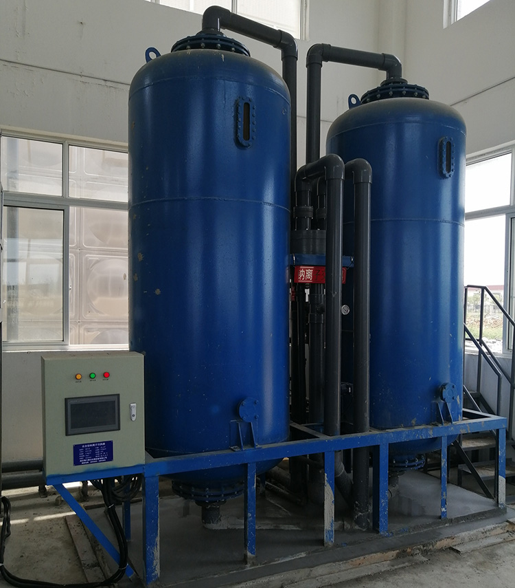 當原水通過離子交換柱時,水中的陽離子和水中的陰離子(HCO-等離子)與交換柱中的陽樹脂的H+離子和陰樹脂的OH-離子進行交換,從而達到脫鹽的目的。陽、陰混柱的不同組合可使水質(zhì)達到更高的要求。